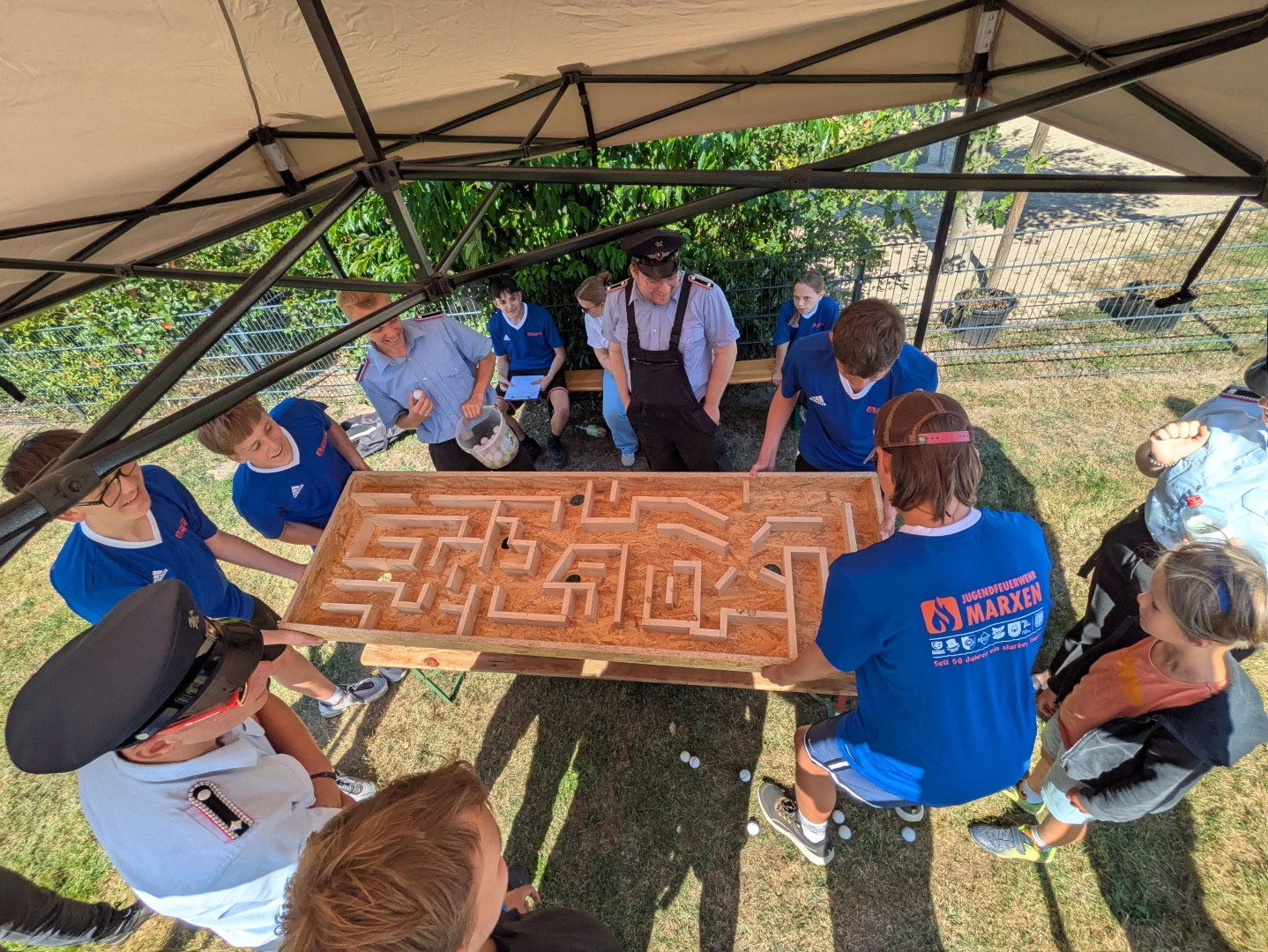 (fba) Marxen. Bei strahlend blauem Himmel fand jetzt der Samtgemeindejugendfeuerwehrtag in Marxen statt. Zahlreiche Gruppen aller Jugendfeuerwehren der Samtgemeinde Hanstedt waren der Einladung gefolgt und nahmen an den beliebten Wettkämpfen teil. Im Völkerball und beim Spiel ohne Grenzen gingen die Gruppen an den Start. Jede der teilnehmenden Wehren hatte sich dabei ein eigenes Spiel ausgedacht, sodass ein bunter und spaßiger Mix entstand. Als Highlight fand auch wieder der beliebte „Schubkarrenlauf“ statt, bei dem ein Betreuer das jeweils jüngste Mitglied der Jugendfeuerwehr durch einen Parcours schieben musste.